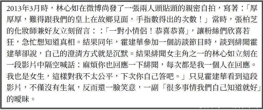 林心如拿霍建华的手机举例,提到自家老公一个手机用五六年,面板都裂了也不换,只要能用就继续用,还好霍建华对家人很大方,这个家人其实就是指他们女儿,只要女儿想要的东西,霍建华立马就买。