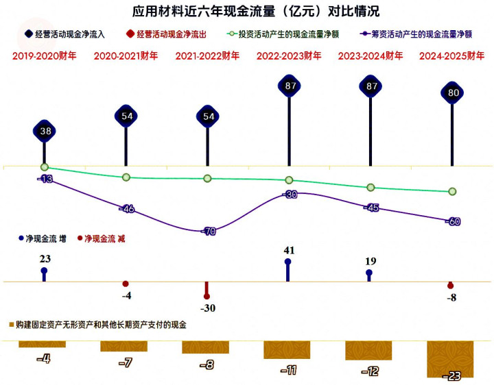 经营活动现金净流入并没有超过前两年的水平,但也差得不多。其固定资产类的投入规模并不算大,2024-2025财年虽然有大幅增长,但也只需要自身造血功能的两三成来投入即可,不仅不需要再融资,还不影响其向资本市场回报约60亿美元。